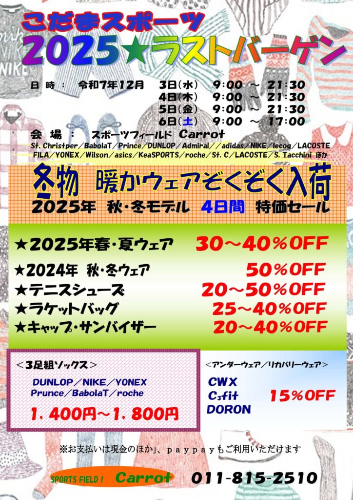 こだまスポーツバーゲンセール2025/12/3-12/6