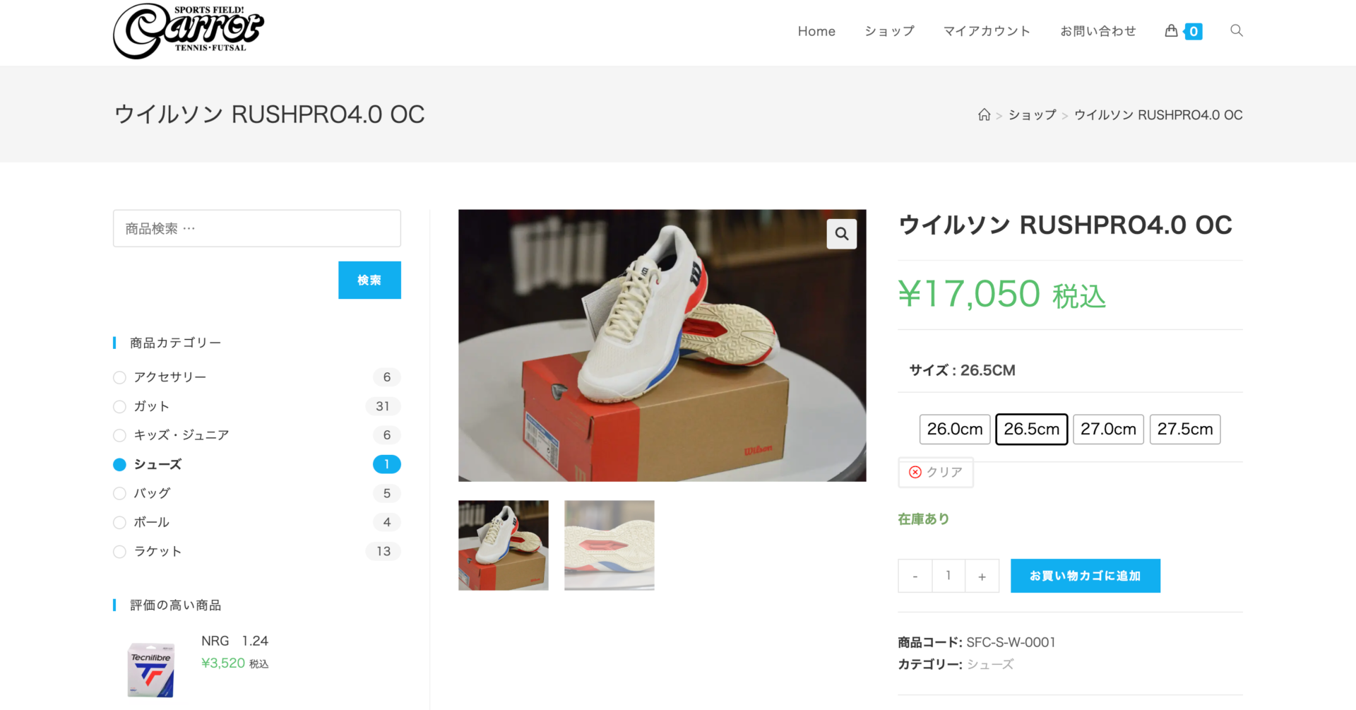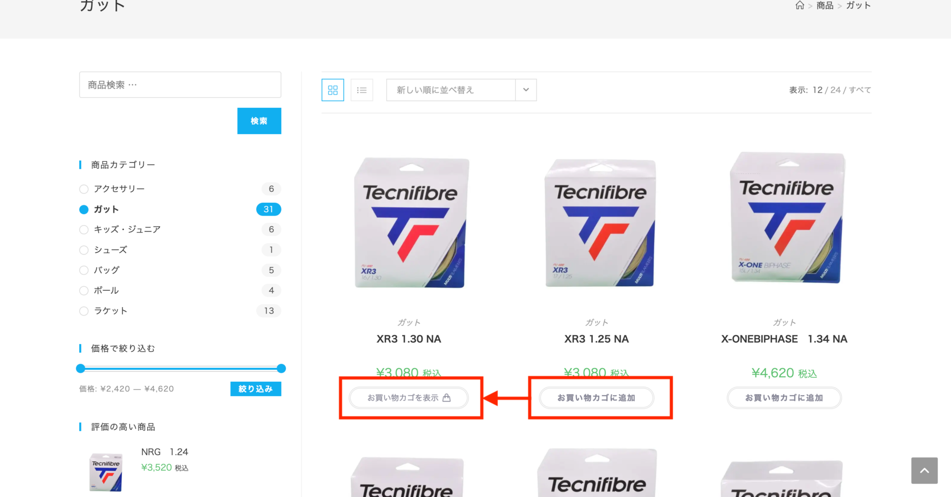カゴに追加された商品は、「お買い物カゴを表示」と表記が変わります。