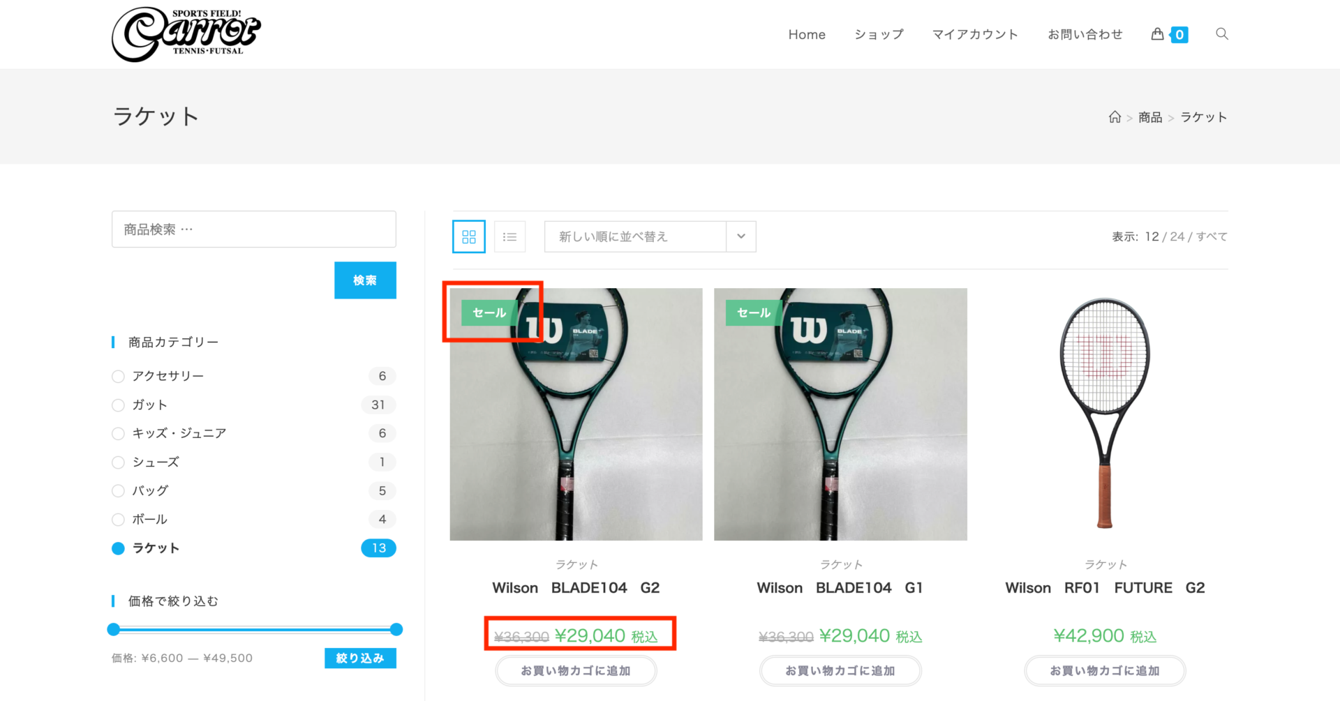- セール品に関しては、写真の左上に「セール」のマークが表示されており、価格のところには、