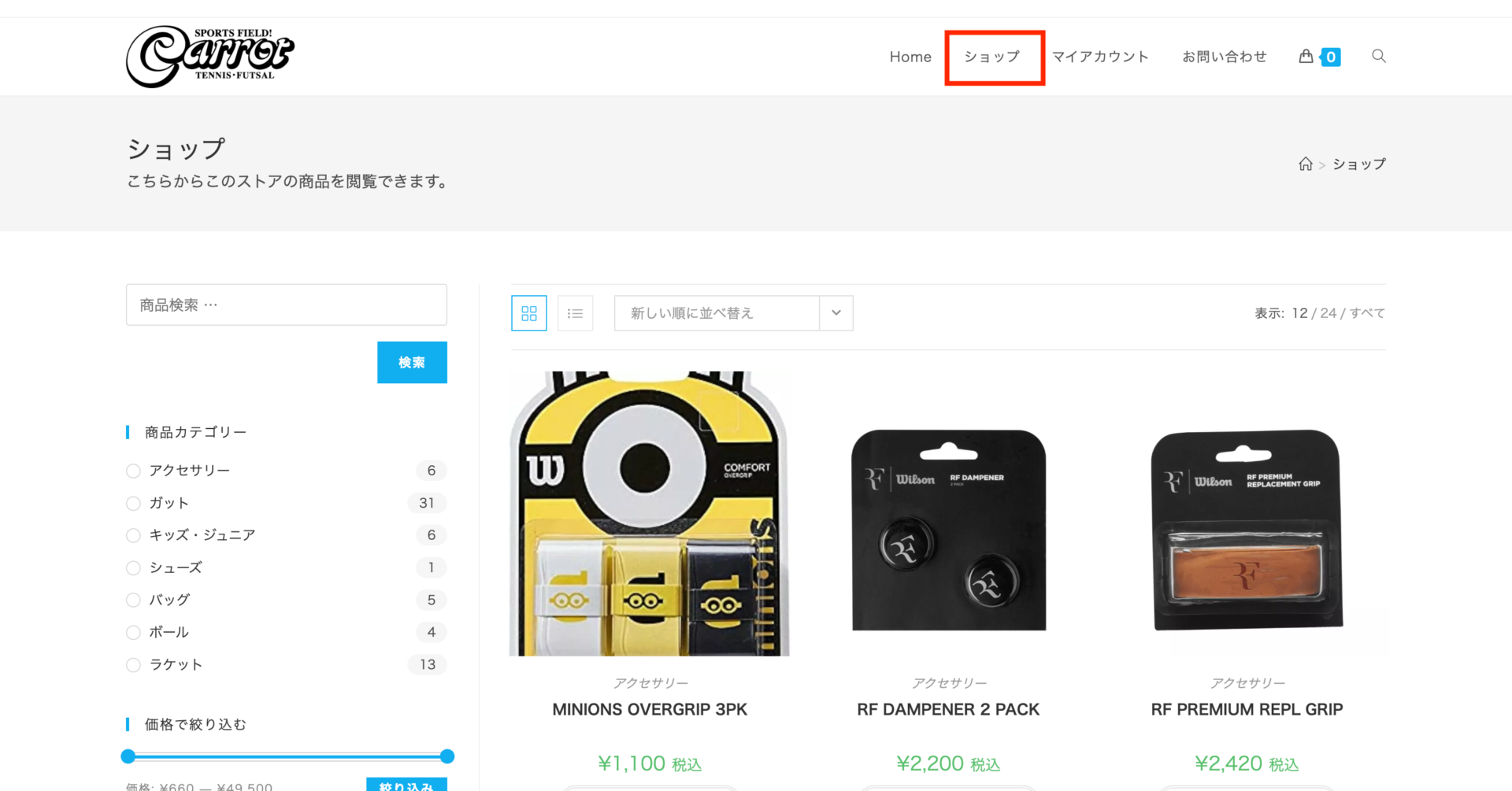 - トップページでは、新入荷の商品等のみ掲載されておりますので、全商品をご覧になりたい方は、「ショップ」ページに進みます。