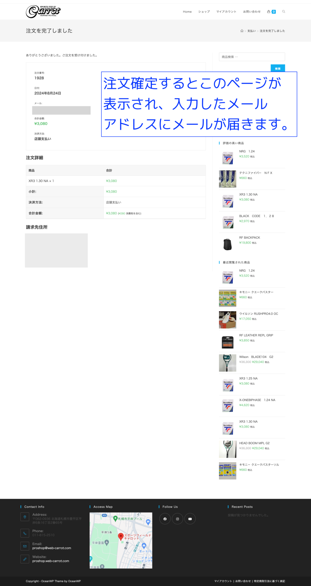 - 注文が確定すると下記のページが表示され、入力(登録)しているメールアドレス宛に在庫確認中のメールが届きます。